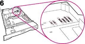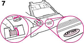 7 Для предотвращения заторов поверните регулятор шкалы в лотке таким образом, чтобы принтером считывался правильный размер бумаги. С помощью переключателя можно получить доступ к расширенному набору форматов. Если регулятор шкалы установлен неправильно, появится сообщение об ошибке.