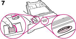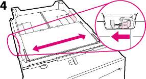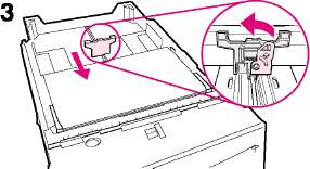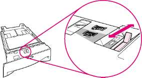 Убедитесь, что направляющие всех лотков соответствуют загружаемому формату бумаги. Формат бумаги, отображаемый напротив лотка, должен совпадать с форматом бумаги, загруженной в лоток. (Принтер будет продолжать попытки распечатать задание, пока не будет установлен правильный формат.)