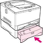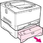 1 Выдвиньте лоток из принтера и извлеките все поврежденные листы из лотка.