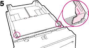 3 Перед тем как вернуть лоток на место, убедитесь в том, что бумага лежит в лотке без изгиба во всех четырех углах и находится под выступами на ограничителях.