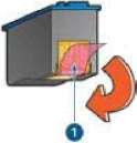 Для определения правильной стороны каретки, сопоставьте значок на этикетке со значком, расположенным над кареткой.