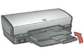 Во избежание выпадения бумаги из выходного лотка, полностью выдвиньте его раскладную часть. Если печать выполняется в режиме "быстрой черновой печати", поднимите ограничитель раскладной части выходного лотка.