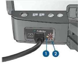 При правильном подключении камеры загорается зеленый индикатор подключения. В процессе печати с камеры индикатор питания мигает, а индикатор подключения горит постоянно. Если камера не поддерживает формат PictBridge, или не находится в режиме PictBridge, индикатор ошибки мигает янтарным цветом.