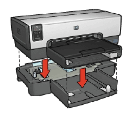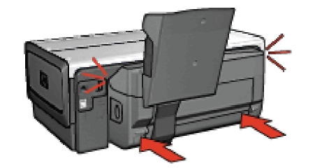 2. Установите устройство двусторонней печати на заднюю панель принтера таким образом, чтобы обе стороны защелкнулись в фиксаторах.