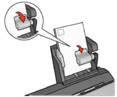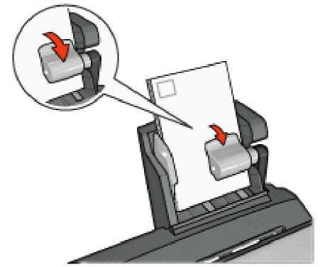 4. Придвиньте направляющую ширины бумаги вплотную к краям конвертов.