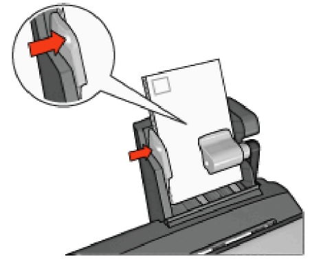 4. Придвиньте направляющую ширины бумаги вплотную к краям карточек.