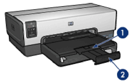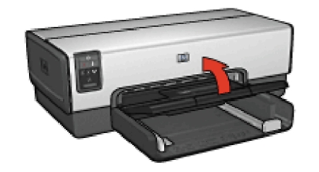 Чтобы бумага не выпадала из лотка, вытяните раскладную часть выходного лотка и поднимите фиксатор.