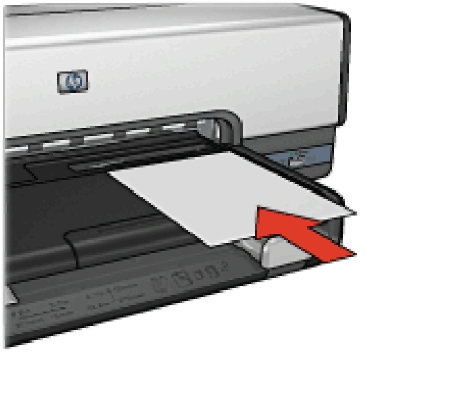 1. Вставьте открытку в устройство подачи фотобумаги и конвертов стороной для печати вниз.