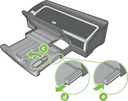 5. Нажмите кнопку, расположенную наверху направляющей ширины бумаги, и переместите направляющую вправо, чтобы она уперлась в край носителя.