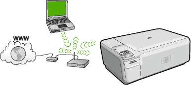 Для обеспечения оптимальной производительности и безопасности беспроводной сети HP рекомендует подключать устройство и другие сетевые устройства с помощью беспроводного маршрутизатора и точки доступа (802.11). Сеть, в которой для подключения сетевых устройств используется беспроводной маршрутизатор или точка доступа, называется инфраструктурой.