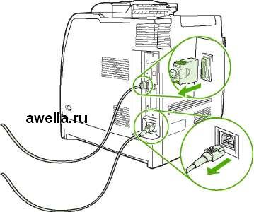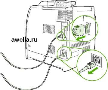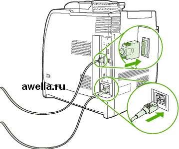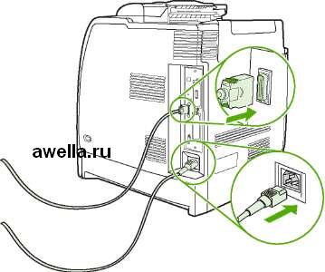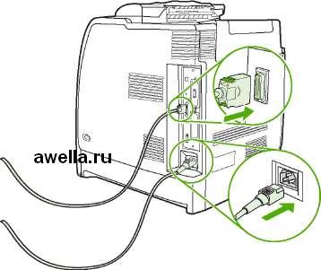 8. Снова подключите кабель питания и интерфейсные кабели и включите принтер.