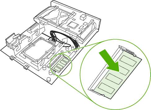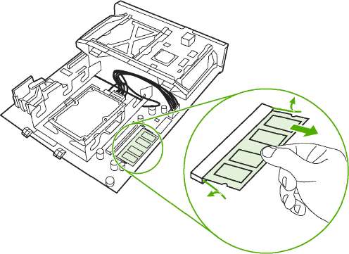 Принтер имеет два 200-контактных гнезда DDR SDRAM. Одно гнездо доступно для добавления памяти в принтер. Имеются модули памяти DDR SDRAM 128 и 256 МБ.