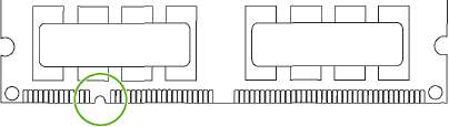 Извлеките новый модуль DIMM из антистатической упаковки. Найдите установочный паз на нижней кромке модуля DIMM.