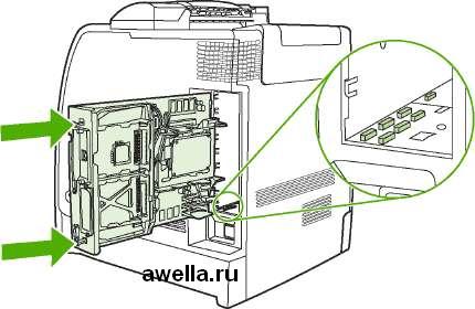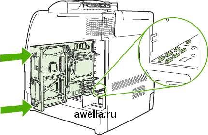 Работа с платами памяти и сервера печати HP Color LaserJet 4700