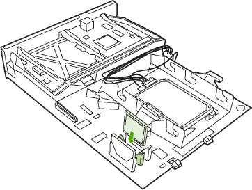 10. Совместите плату форматтера с направляющими сверху и снизу гнезда, а затем задвиньте плату в принтер.