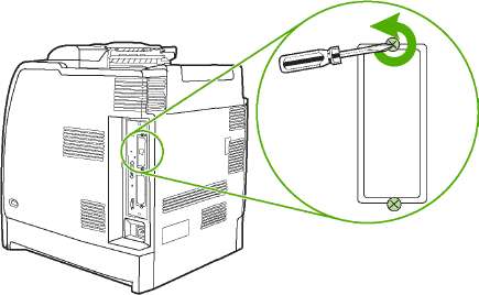 5. Плотно вставьте плату сервера печати HP Jetdirect в гнездо EIO.
