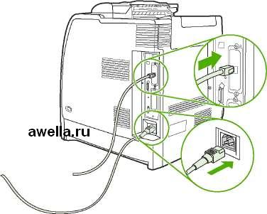 7. Снова подключите кабели и шнур питания и включите принтер.
