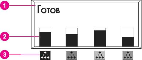 Датчик отображает уровни тонеров (черный, пурпурный, желтый, голубой). Когда уровень неизвестен, вместо уровня использования появится символ ?. Это может произойти в следующих ситуациях: