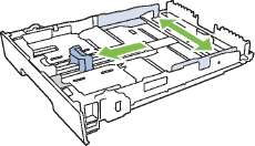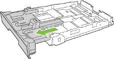 • Чтобы загрузить бумагу формата Legal, необходимо увеличить размеры лотка. Для этого прижмите фиксатор и вытяните переднюю часть лотка к себе.