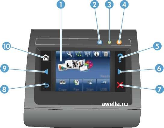 Кнопка Справка и индикатор: обеспечивает доступ к справочной системе панели управления