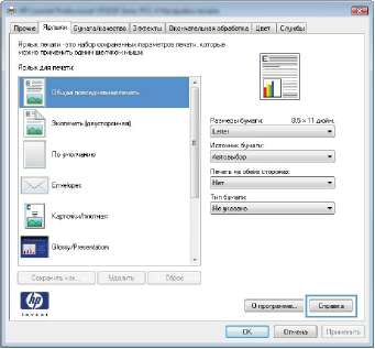 7. Выберите параметр для используемого типа бумаги и нажмите кнопку ОК.