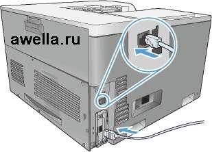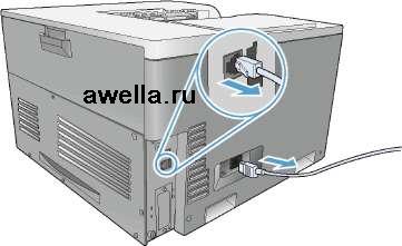 6. Снова подключите кабель питания, подсоедините интерфейсный кабель к плате сервера печати HP Jetdirect и включите устройство.