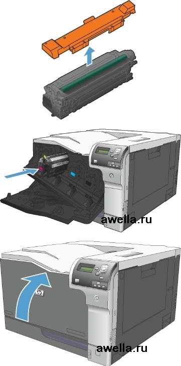 1. Откройте переднюю дверцу устройства. Убедитесь, что дверца полностью открыта.