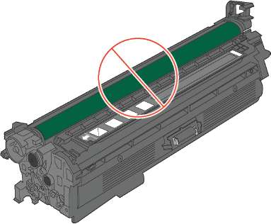 Не касайтесь зеленого ролика (барабана переноса изображений) с нижней стороны. Отпечатки пальцев на барабане переноса изображений могут стать причиной появления проблем с качеством печати.