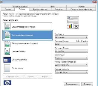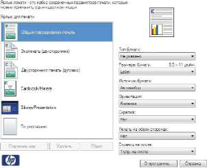 При выборе ярлыка соответствующие параметры меняются в других вкладках драйвера принтера.