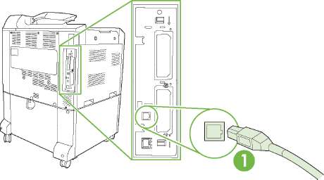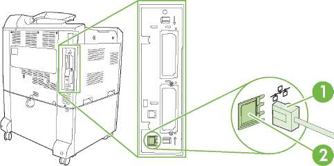 Все модели устройства оснащаются встроенным сервером печати HP Jetdirect, который поддерживает подключение к сети с помощью разъема локальной сети LAN (RJ-45), расположенного в задней части устройства.
