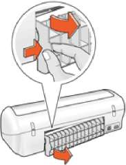 5. Извлеките замятую бумагу из задней части принтера и установите на место заднюю дверцу.