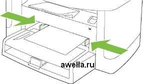 Направляющие обеспечивают правильную подачу носителя для печати в устройство и позволяют избежать скручивания напечатанных страниц. Лоток 1 оснащен боковыми и задними направляющими носителя. При загрузке носителя положение направляющих следует отрегулировать в соответствии с длиной и шириной используемого носителя.