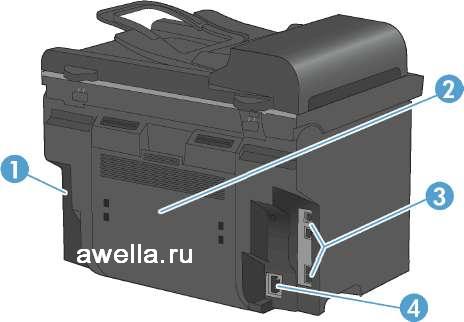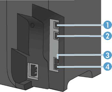 Устройство имеет стандартный сетевой порт 10/100 Base-T (RJ-45), высокоскоростной порт USB 2.0 и порты для факса.