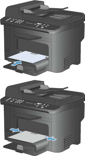 Загружайте бумагу верхним краем вперед и стороной для печати вверх.