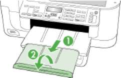 3. Сдвиньте ограничитель бумаги в лотке таким образом, чтобы его положение соответствовало размеру загруженной бумаги, после чего опустите выходной лоток.