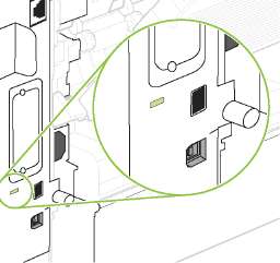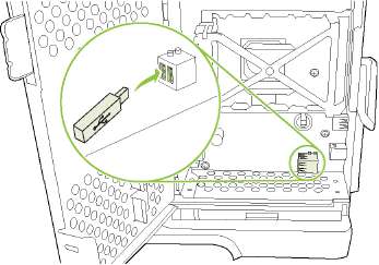 5. Найдите порты USB внизу на плате форматтера. Вставьте USB-устройство в один из портов.