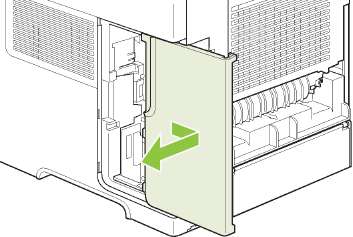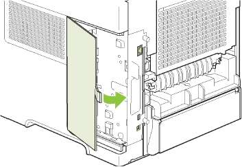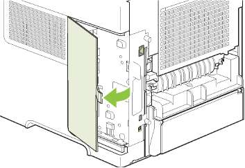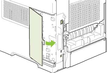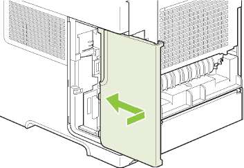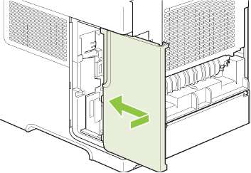 7. Установите правую боковую панель на место. Выровняйте выступы на панели с отверстиями в устройстве и задвиньте панель по направлению к передней части устройства до щелчка.
