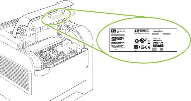 Наклейка, содержащая номер модели и серийный номер, находится на внутренней стороне верхней крышки.