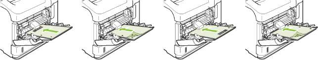 Печать из лотка 1 в задний выходной отсек обеспечивает наиболее прямой проход бумаги. Открытие заднего выходного отсека может улучшить производительность печати, если печать выполняется на следующих носителях: