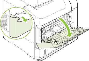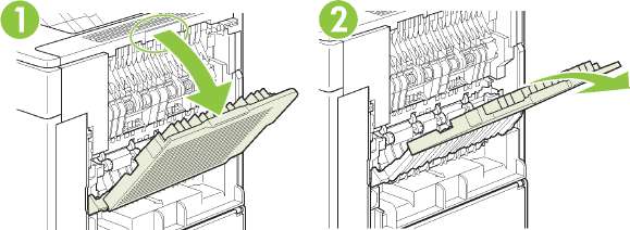 Открытие заднего выходного отсека приводит к отключению дуплексера (если он установлен) и верхнего выходного отсека. Во избежание замятия бумаги не следует открывать и закрывать задний выходной отсек во время печати.