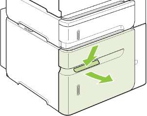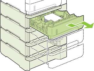 1. Выдвиньте лоток из принтера и немного поднимите его, а затем извлеките лоток из устройства.