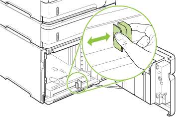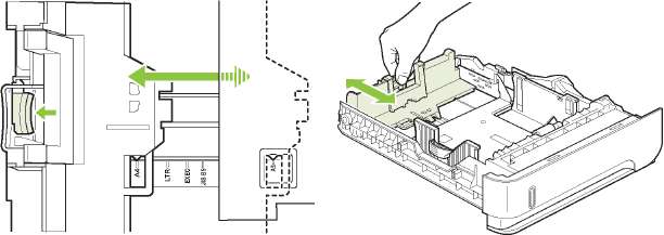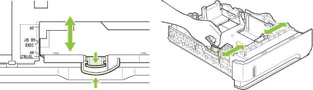 3. Сожмите защелку, которая расположена на заднем регуляторе и переместите его так, чтобы установить нужный формат бумаги.