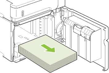 Дополнительный лоток на 1500 листов предназначен для форматов бумаги Letter, A4 и Legal. Устройство автоматически определяет формат бумаги, если направляющие лотка установлены правильно.
