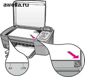 Для правильного размещения оригинала воспользуйтесь метками, расположенными вдоль переднего и правого краев стекла.