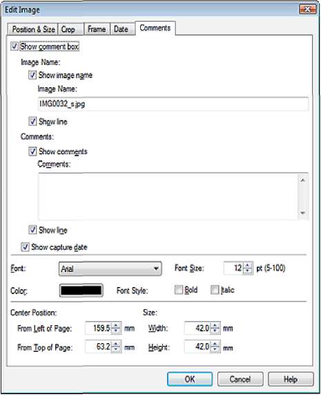 Выберите вкладку Примечания (Comments) в диалоговом окне Изменение изображения.