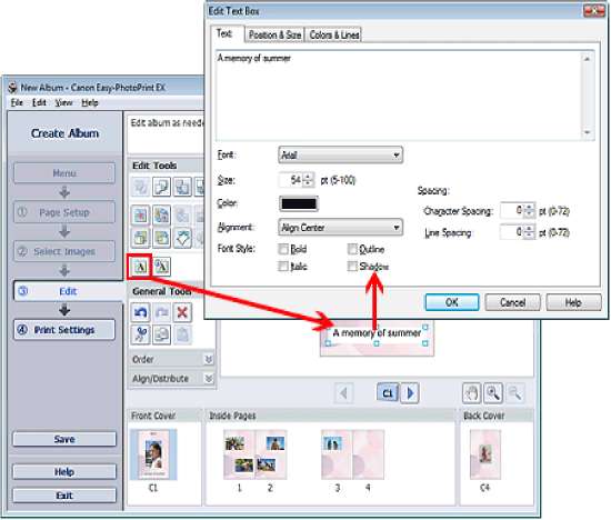 Выберите вкладку Текст (Text) в диалоговом окне Изменение надписи (Edit Text Box) и в текст, а затем нажмите кнопку ОК (OK).