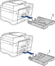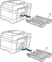 2. Полностью извлеките лотки (1) из устройства, как показано стрелкой.