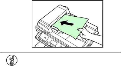 Уложите листы документа в стопу в порядке следования и разместите их на входном лотке автоподатчика оригиналов изображением вверх. Аккуратно задвиньте передний край документа до упора внутрь автоподатчика оригиналов.