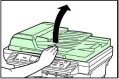 Перед тем, как поднимать вверх автоподатчик оригиналов, убедитесь в том, что на лотках автоподатчика нет листов предыдущего документа. В противном случае эти листы могут упасть на пол при открытии автоподатчика оригиналов.