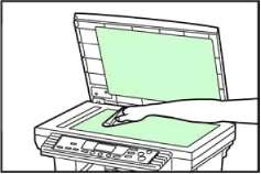 Поднимите вверх крышку стекла экспонирования и протрите области, выделенные серым цветом, как показано на иллюстрации мягкой тканью, смоченной спиртом или каким-нибудь чистящим средством.